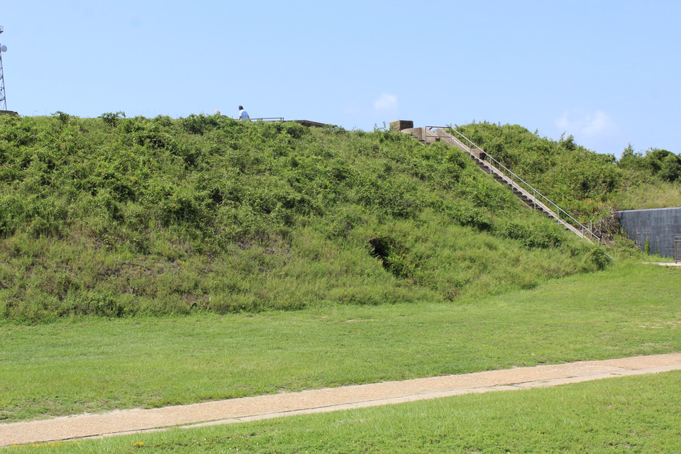 This is Battery Thomas.  Constructed in 1898, this concrete gun emplacement also protected the mine field located across the entrance to Mobile Bay.