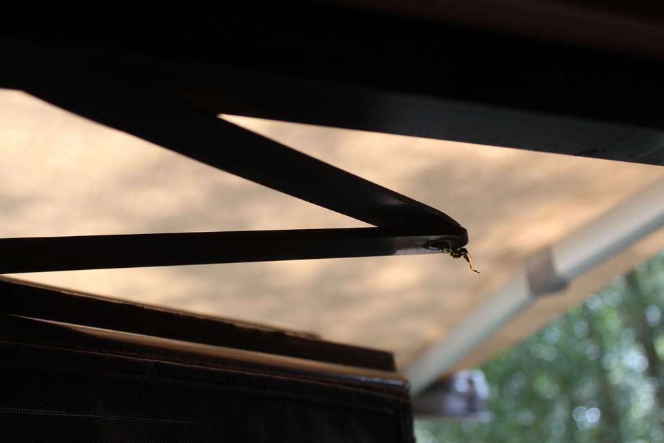 Then there was this.  I was on the step ladder cleaning off our one living room slide. I happened to glance at our satellite antenna and thought to myself Now that looks odd.  This is the wheel which allows the arm of the antenna to roll along the roof as it parks itself.  Well, it was just lying on the roof no longer attached to the antenna.  There is supposed to be a c clip that holds the shaft in place.  Like the screws for the bathroom door this clip departed and had gone to where only they know where they hide.  A trip to the hardware store is in order today.