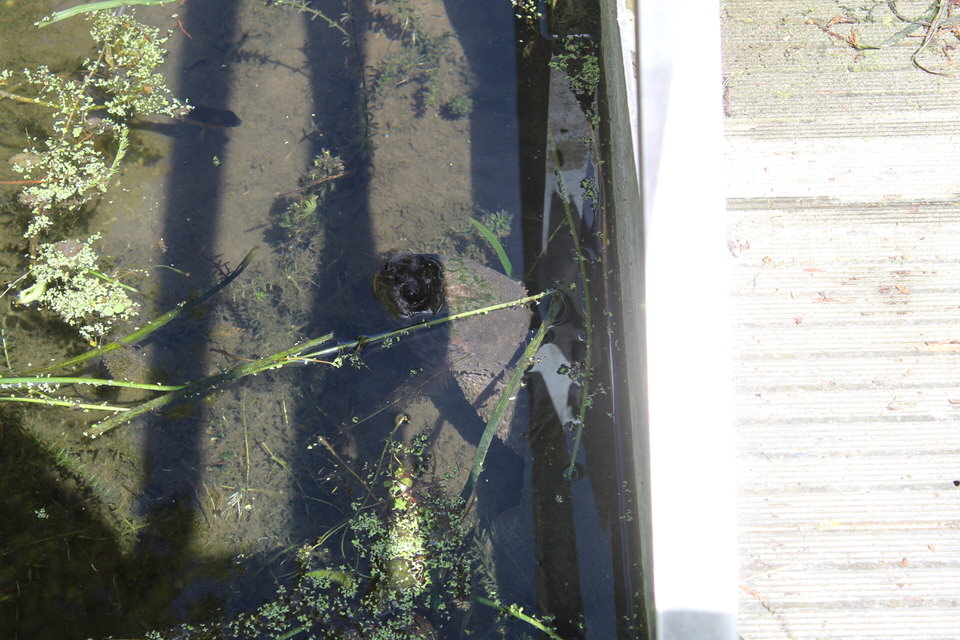 Then there was this guy alongside the launch ramp. Look closely and you’ll see two little beady eyes looking back at you. This was one enormous snapping turtle looking for a bit of food or someone’s finger to munch on. Not mine.