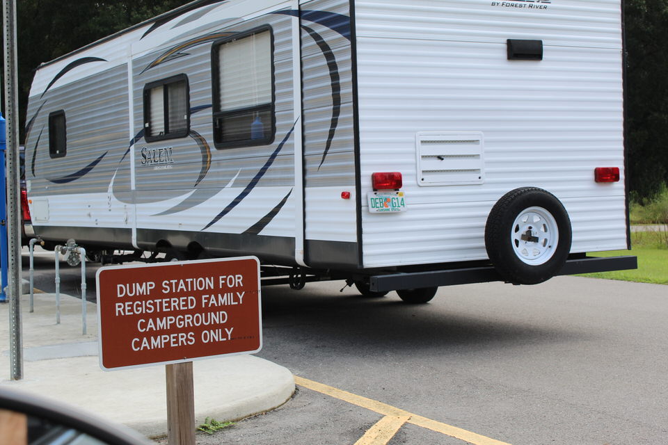 Our first stop on the way out. The black tank was only one quarter full. We can go two weeks before we have to dump it. However, the gray tank was half full and it would be another four days after this before we would have a FHU site again.