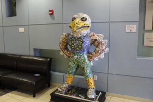 Azul the Eagle which is Florida Gulf Coast University’s official mascot. He is named Azul which is Spanish for blue which is one of the official school colors of cobalt blue and emerald green. The eagle mascot was selected by FGCU to represent pride, strength and intelligence. Azul has been all of those things and more to FGCU.