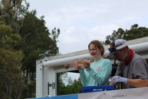 The participants left at 6 am but by 3 pm they were back with their catch. Here is one lucky young lady who caught a prize winning fish.