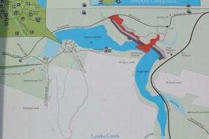There are actually two lakes and two dams in this immediate area. Hammond Lake is a 640-acre lake and Tioga Lake is a 498-acre lake. You’ll note on the map above that there is a connecting channel between the two lakes. More about that in a minute.
