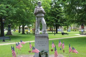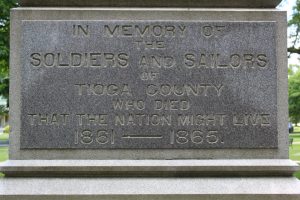 The oldest statue on The Green is The Civil War Soldiers Memorial that honors both Soldiers and Sailors of Tioga County.