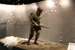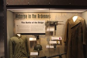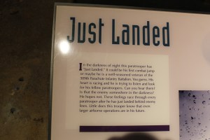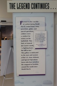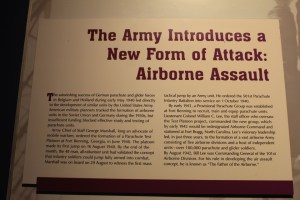 The Gallery is laid out in such a way that it transports you through time. The first exhibits highlights the the conception and formation in 1940 of the United States Parachute Test Platoon. One interesting note, the first paratroopers had no standard issue helmet. Instead, they borrowed helmets from the local football team!