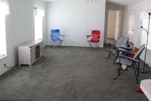 I decided to do a little reorganizing until our furniture arrives. This is our living room in its current configuration. Our furniture is supposed to arrive this Thursday. That’s what they say. I’ll believe it when it gets here.