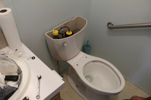 The new toilet installed, it just needs a tank top and a toilet seat. Now, this is where things should have stopped. However, this is where things began to snowball.