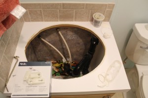 But after installing the new faucets we decided that the old sinks were just plain junk. They were cheap plastic sinks that were yellowed and old. They were probably the original sinks that came with the house.