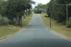Spook Hill in Lake Wales, Florida. This we had to experience. So we were off. When you get there you find that there’s not much to Spook Hill. Just the sign you see here and a white line on the road beneath it.