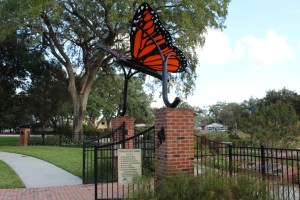 Through some research on the internet we learned that: the garden has been made possible through donations by the Rotary Club of Auburndale and funding from the City’s Community Redevelopment Agency. The garden features over 30 different types of plants that are Florida-Friendly (native and non-native, drought-resistant plants). The plant selection has been designed to attract a wide range of Central Florida butterfly species to feed on the nectar of our flowering plants. There are also several species of flora that serve as host plants to particular butterflies. For example, Milkweed is the exclusive breeding ground for the popular Monarch Butterfly. Similarly, the Florida State Butterfly, the Zebra Longwing, uses Passion Flower to lays its eggs.