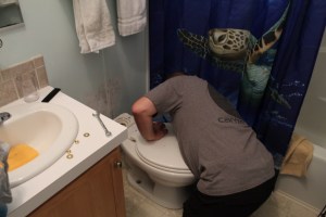 Of course since he had once been a plumber, I decided to put him to work again. This time in the front bathroom.