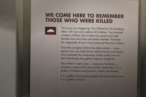 There is really so much more but we’ll call it here. There is a whole display dedicated to the collection of evidence and the building of the case against Timothy McVeigh and Terry Nichols. Another display details their trial and then their sentencing. Then there is the Memorial which is outside. We’ll cover that tomorrow night.