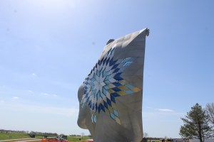 A little bit of internet sleuthing and we discovered that: the stainless steel, 50-foot-tall statue was specifically designed by sculptor Dale Lamphere to honor the cultures of the Lakota and Dakota people. That’s why he used three Native American models ages 14, 29 and 55 to perfect the face of Dignity.