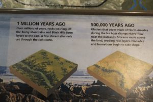 It was time now for a trip to the Visitor Center with the intent of discovering just how the Badlands came to be. Yes, some internet sleuthing would accomplish the same thing but what fun would that be. Thus, a couple of days ago after a hearty breakfast we were on our way. Oh my, did we have to drive far to get there; I don’t even think it took us five minutes!
