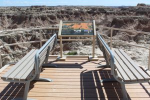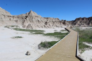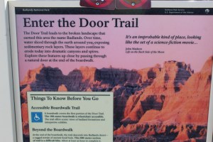 This is a short 1/4 mile boardwalk trail that leads through a break in the Badlands Wall known as the door. At the end of the boardwalk the trail does continue but travel at this point is at your own risk.