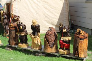 I love chainsaw art! I see at least two pieces I’d love to have: the fox and the cardinals.🐦🦊