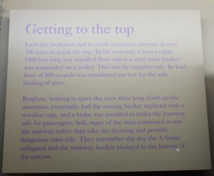 Getting to the top was either by tram and or by climbing up the 700 stairs that led to the top. It was said that the majority of the workers used the stairs since they did not trust the tram.