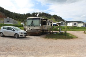 Our new home for the next four nights. We have a pull-thru, gravel base, reasonably level with all utilities easy to access. Unfortunately, the weather for the next four days does not look good. But no matter we’ll be going sightseeing. Tomorrow it will be Devil’s Tower and then Deadwood after that.
