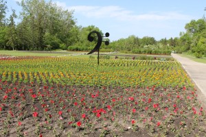 Today we went to the Gardens to see what we can see. Unfortunately, they proved to be somewhat of a disappointment. I was expecting to see per their web site row upon row of colorful flowers. That was not the case. The simple reason being the weather here has been both unseasonably cold as well as wet. Speaking of which, last Tuesday we were told they received 3 1/2 inches of rain in just one hour. Therefore, they have been unable to plant most of the flowers during the past month. And a lot of what they had already planted was heavily damaged on Tuesday by the rain and wind. We were also told that if one comes the around mid-July much of the flowers will be planted or replaced and finally in full bloom. Well, we don’t have that long so lets go for a walk and see what we can see.