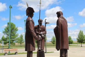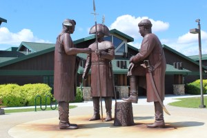 Before you even enter the Center, you encounter this impressive statue of Captain Lewis and Clark, and Chief Sheheke.  This is the Mandan chief the Captains met when they stopped for the winter, the same chief who declared that If we eat you shall eat, if we starve, you must starve also. With these words Lewis and Clark found hope that they and the men with them would be sustained through a long, cold winter yet to come.