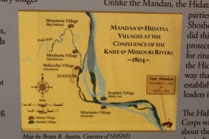 On this map you can see the believed site of Fort Mandan and the location of the various Native American villages.
