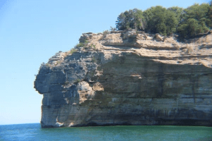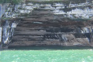 The spectacular cliffs of Pictured Rocks consist entirely of sandstone. The cliffs were formed long ago, over a long period of time when mineral sediments accumulated in thick heavy layers transported by water, wind or ice.