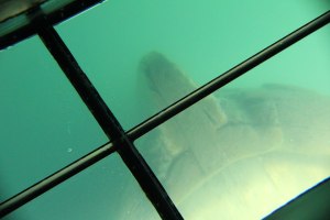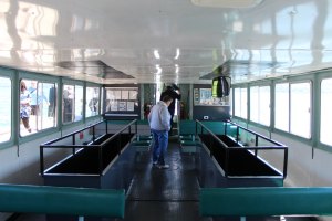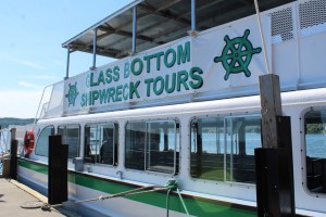 there are two glass bottom viewing ports – one to port and one to starboard – that allow a clear view of the lake floor and everything that is there.