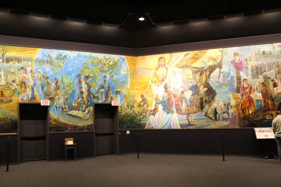 This is the center piece of this museum. Housed in Mural Hall it is called the Behalt Cyclorama. Behalt means to keep or remember. It is a 265 ft long and 10 ft high mural in the round. It illustrates and helps all who view it to remember the heritage of the Amish and Mennonite people from their Anabaptist beginnings in Zurich, Switzerland in 1525 to the present day. It’s vivid colors and sweeping lines are breathtaking and staggering. Certain colors dominate certain historical periods: reds for times of persecution, blues and greens for times of greater peace and prosperity. Among many it has earned the nickname of The Sistine Chapel of the Amish and Mennonites.