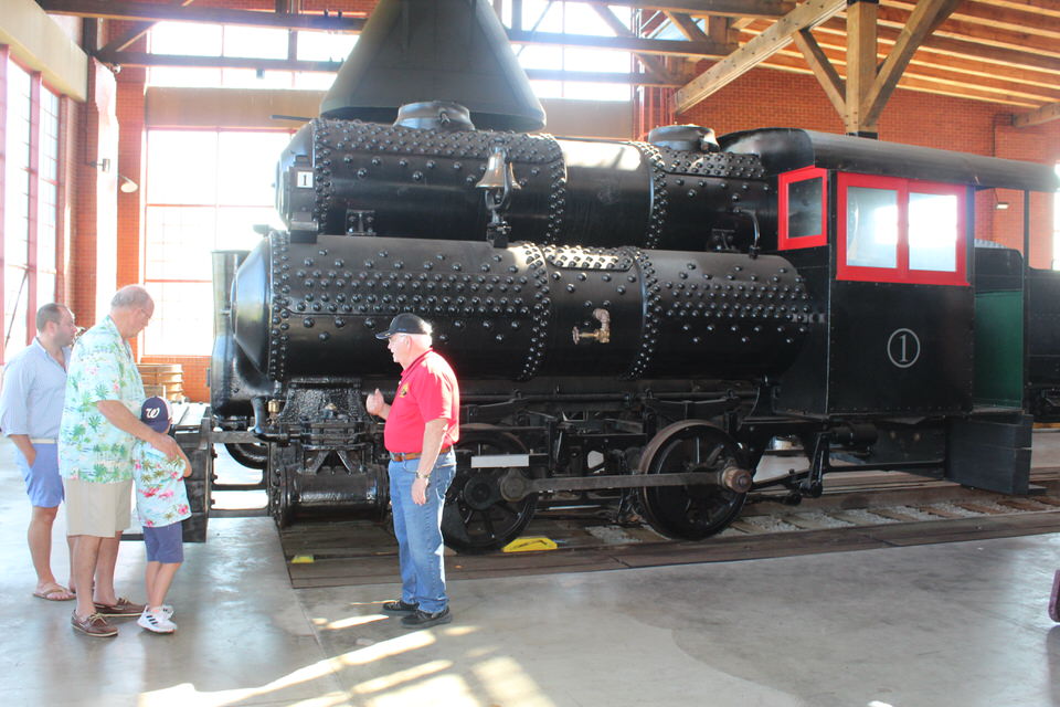 This is #12 which has already been restored to operational status. It was acquired by the museum in 2011 and promptly went into the back shop for inspection and the roundhouse crew developed a restoration plan. Countless parts were repaired or replaced. In 2018 it finally received a fresh coat of black paint and chuffed out of the back shop under its own power. It was the first derelict steam locomotive totally rebuilt for service at the roundhouse.