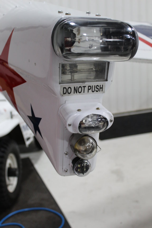 Yup, that is a Coke cup stuck on the nut that holds the prop on. The story goes that one night after finishing his nightly air show Harold was taken to task for not having a proper nose cone for his propeller. Well, he finished the coke he was drinking, took the now empty cup, stuck it on the nut over the propeller and said There, now it has a nose cone! The funny thing is, he forgot about it, flew the plane back to its home base and lo and behold the cup was still there – as it is today.