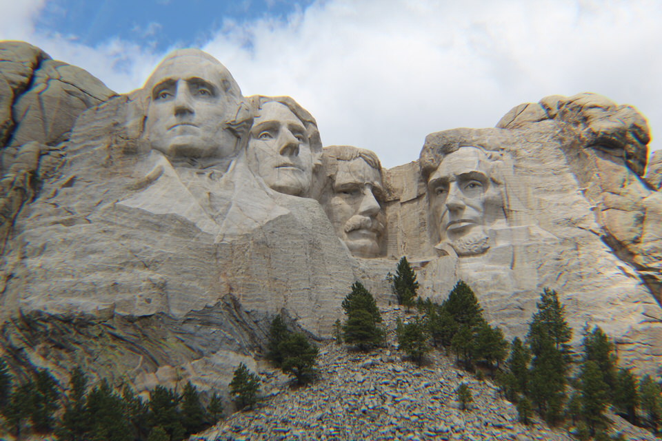 Mt. Rushmore National Memorial. The approach is through the avenue of flags. You see them in the distance but nothing can prepare you for that moment when you first step onto the Grand View Terrace and come face to face with the four presidential figures. It literally took my breath away. We were so honored to have been able to visit this Memorial. I was surprised to discover that the memorial was never completed. Once we were involved in WW II no further funds were set aside for the memorial so all work stopped at that point in time.