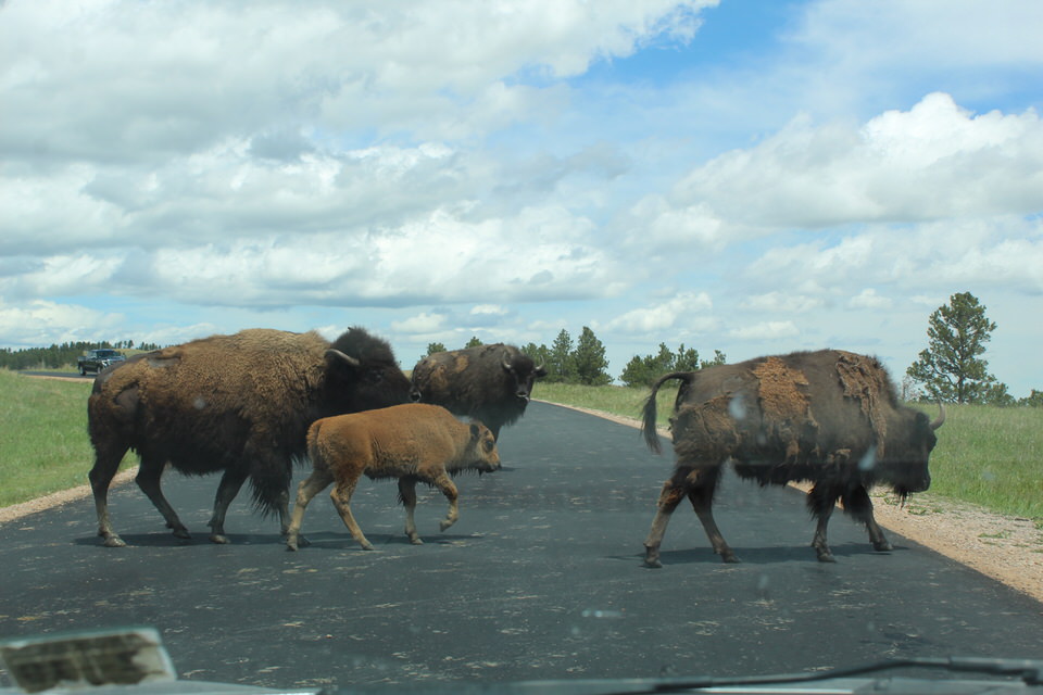 We had a wonderful two weeks at Custer State Park. There were the begging burros, bison aplenty, a visit to the just opened Bison Center, and fun traveling Needles Highway, Iron Mountain Road and the Scenic Loop Road. We visited here in May and what to my wondering eye did I see one day but snow softly falling to the ground. Thankfully, it didn’t last long nor did it stick. But snow in May?