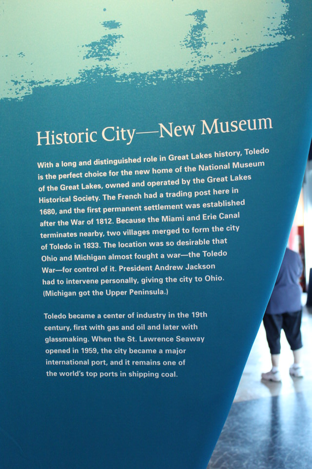 Before you even get into the museum proper there is this little tidbit of information about Toledo that I found rather amusing. Toledo was so desirable a location that Ohio and Michigan almost fought a war – the Toledo War – for control of it. President Andrew Jackson had to intervene personally, giving the city to Ohio. Michigan got the Upper Peninsula.