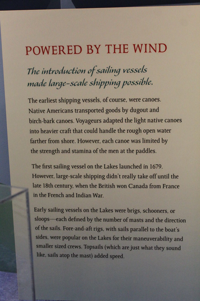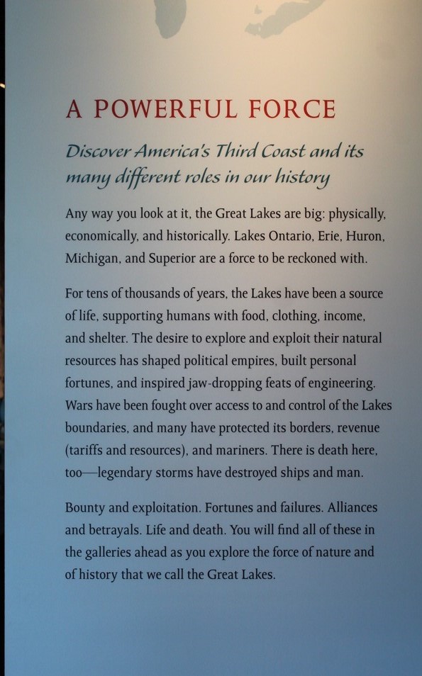 The museum is divided into a number of different exhibit areas. Each area was well laid out and offered a wealth of information about different aspects of Great Lakes history. Following is a snapshot of some of those areas.