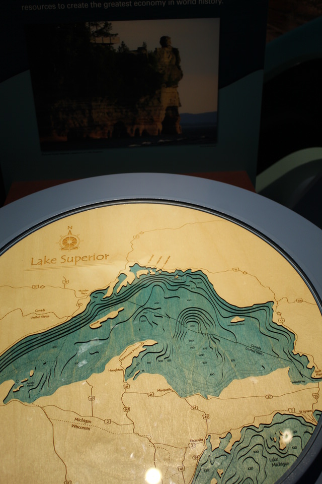This is the entrance to the museum. The large white board is actually a movie screen on which you are treated to an exceptionally well done film giving an overview of the Great Lakes.