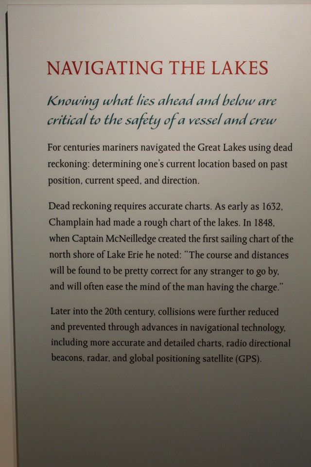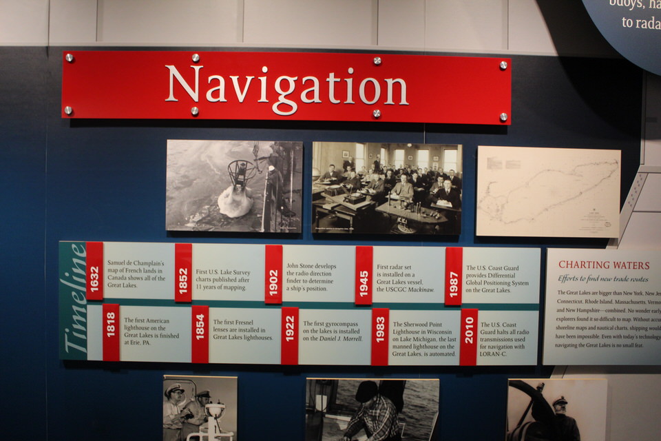 Great Lakes travel can be treacherous, and sailors battle unpredictable weather, shoals, rocks and the limits of their own technology. This area highlights both what has been done in terms of lifesaving equipment as well as the many different technologies used to safely navigate the lakes.