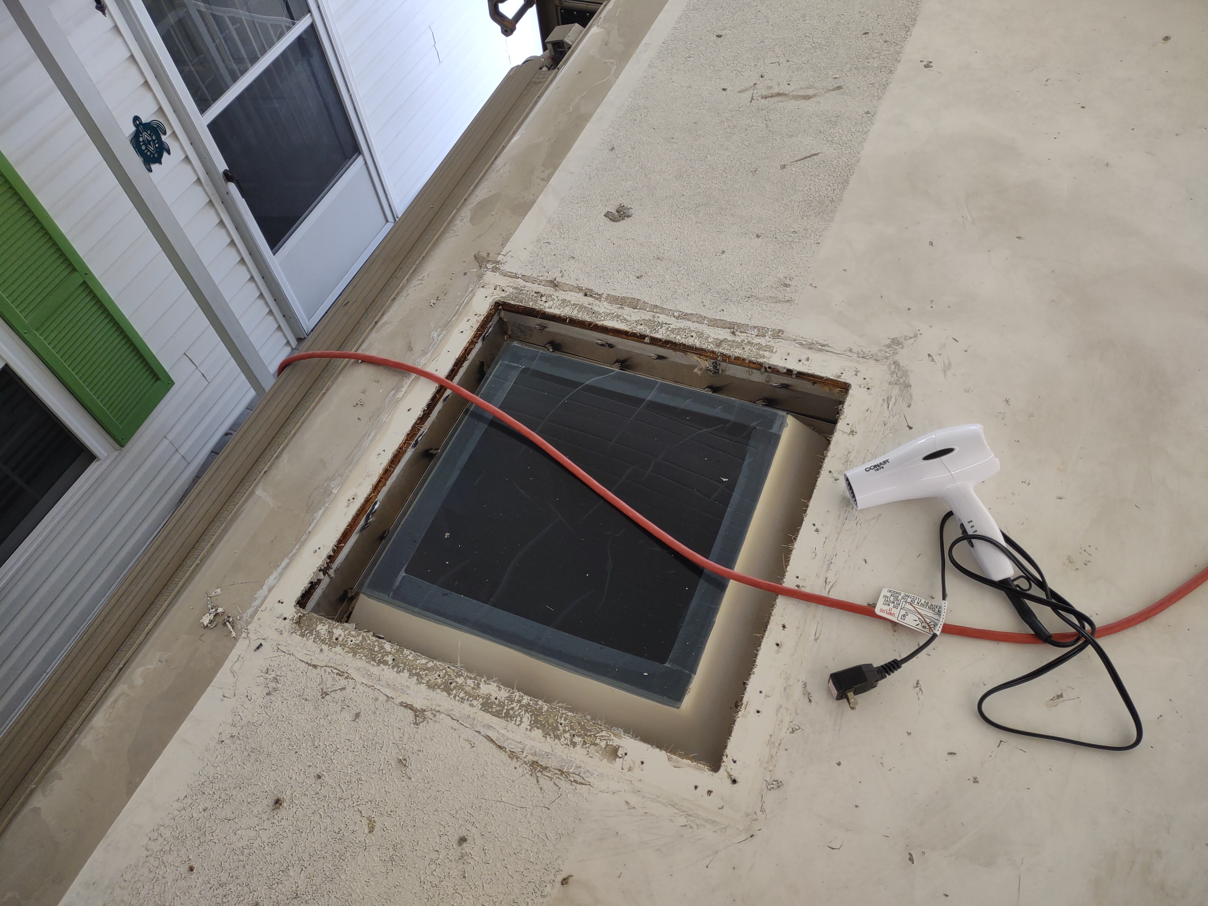 That’s the perfect way. But there’s another way to solve this without going to all that expense. I’m going to infuse an epoxy resin into the rotted wood. This will strengthen the existing wood and rebind the layers back together. Then I’ll fill any left over voids with an epoxy body filler. I’ll also install and bond a piece of metal to the damaged wood which will give a piece of solid material for the screws to bite into when the new skylight is installed. Then the new skylight will be installed and we’ll be as good as new. Now how about that.